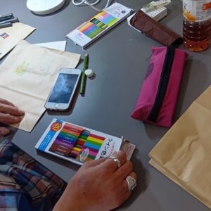 トリドリでの活動をいくつかご紹介します 主力商品のコーヒーに関する作業をやっています。右の写真はチャフを取っているところです。 生豆を選り分けて焙煎し、チャフと呼ばれる薄皮を一粒一粒手作業で取り除き、ドリップコーヒー